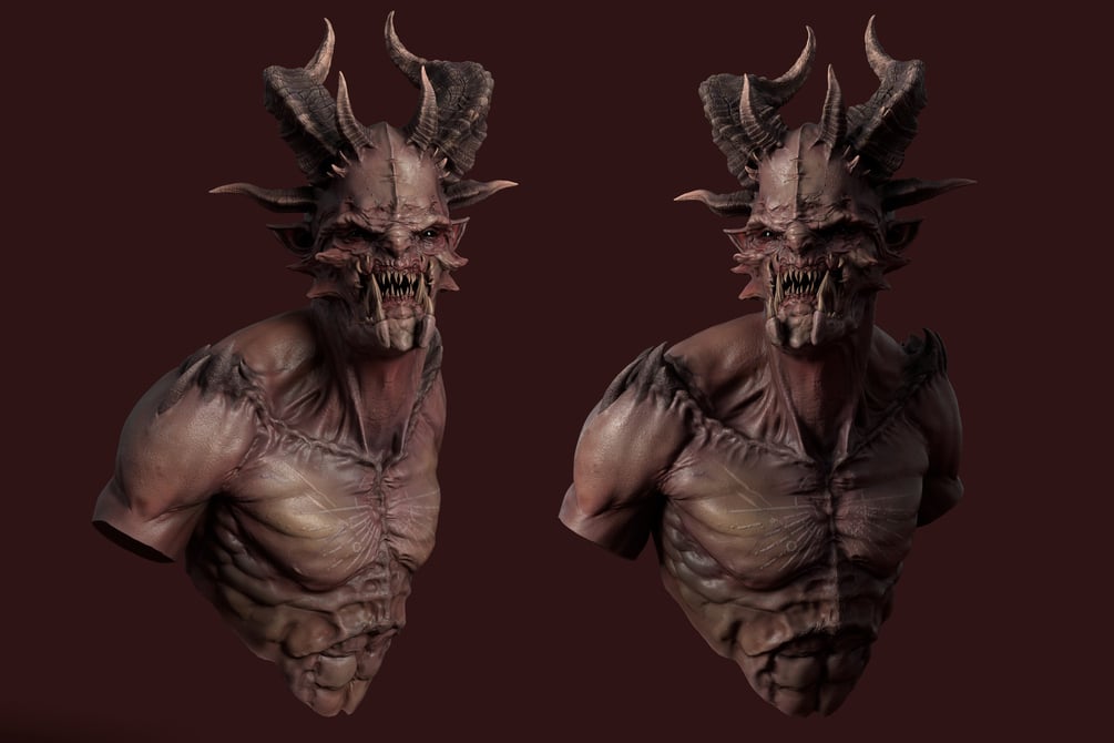 Это таймлапс процесса текстурирования демона с комментариями.