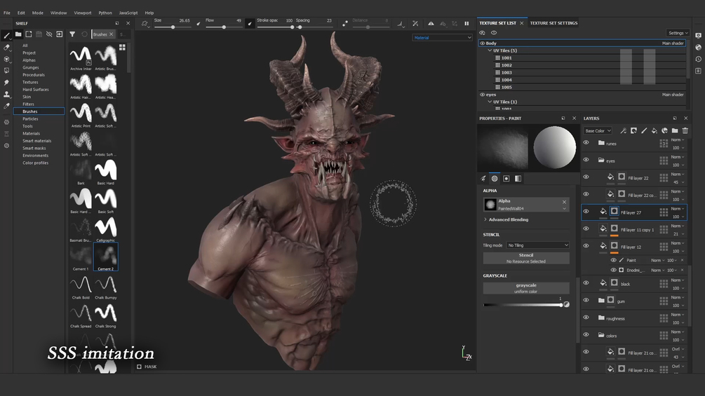 Это таймлапс процесса текстурирования демона с комментариями.
